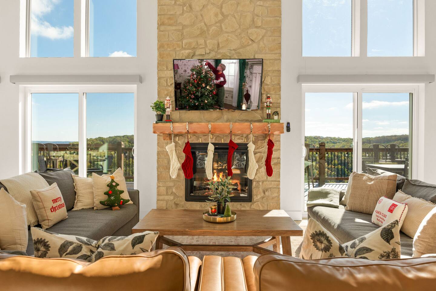 **CHRISTMAS DECORATIONS AND A TREE WILL BE AVAILABLE DURING THE HOLIDAY SEASON!** With 7 bedrooms, 7 bathrooms and a hot tub, The Wild Lake Retreat is perfect for large groups, family vacations, and unforgettable getaways with friends. Things to look forward to when you book The Wild Lake Retreat: ✔ 7 Bedrooms / 7 Bathrooms: 5 king beds, 2 queens, 1 high-end sleeper sofa, and 8 twin beds in the bunk room. Luxury sheets and towels. ✔ Free access to community amenities like an enormous lazy river, pools (pools closed during winter 2023-2024, heated pools to come in 2024), and a kid's playground. ✔ Breathtaking Views: Step onto the expansive deck to witness awe-inspiring views of Table Rock Lake. There are 2 decks outfitted with lounge chairs, rocking chairs, bar stools, a hot tub, and two dining tables. ✔ Comfort and Elegance: Each thoughtfully-designed bedroom offers plush beds, premium linens, and private bathrooms, ensuring ultimate relaxation. ✔ 2 Fully-Equipped Kitchens: The kitchens are fully stocked with all the tools you need, two large fridges, complimentary spices, two coffee makers, a Keurig, dishwashers, and more to feed your whole group. Kids plates and a high chair are also available. ✔ Home entertainment: Enjoy a cozy theater room, a Nintendo Switch, lots of board games, books, a shuffle board, and smart TVs in every bedroom. Unwind by our cozy fireplaces in the living rooms or have a movie night in the dedicated theater room! ✔ Electric Car Charging What you have access to nearby: ✔ Nature: Explore hiking trails that wind through the Ozarks, legendary fishing, and wildlife jeep tours. ✔ Water Adventures: Table Rock Lake provides endless water adventures, from boating to paddle boarding and fishing. ✔ Charming Local Attractions: Discover the charm of Branson's local attractions, including shopping, unlimited entertainment, and marinas to rent boats. ✔ Branson Entertainment: Only a short drive away, Branson offers world-class entertainment, featuring theaters, music shows, and thrilling attractions for all ages. ✔ Golf: Just as Branson offers a diverse selection of shows, entertainment, and attractions, this area of the Ozarks also makes way for some of the best golf courses in the country! Located at Big Cedar in Ridgedale, Missouri, Payne’s Valley was designed by none other than the 82-time PGA TOUR winner, Tiger Woods. Only 29 miles from the Retreat. ✔ Smoke-free home: To ensure a comfortable and pleasant experience for all guests, smoking is strictly prohibited inside the house or outside near any open windows. This includes cigarettes, electronic cigarettes, and cannabis. Violation of this rule will result in an additional cleaning fee. Book your stay at The Wild Lake Retreat today and let our luxury cabin be your favorite getaway. Your idyllic retreat awaits, offering the perfect blend of serenity, adventure, and captivating beauty of Table Rock Lake.